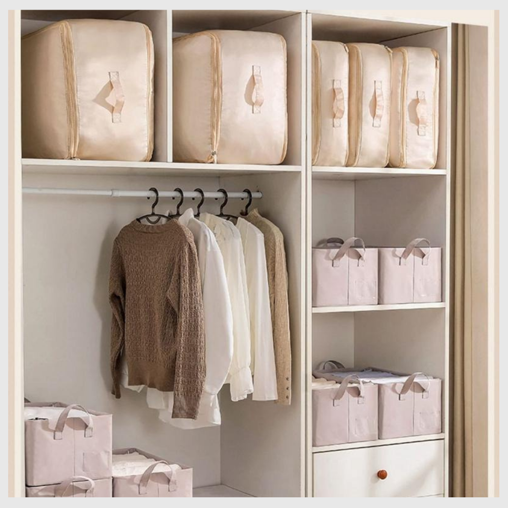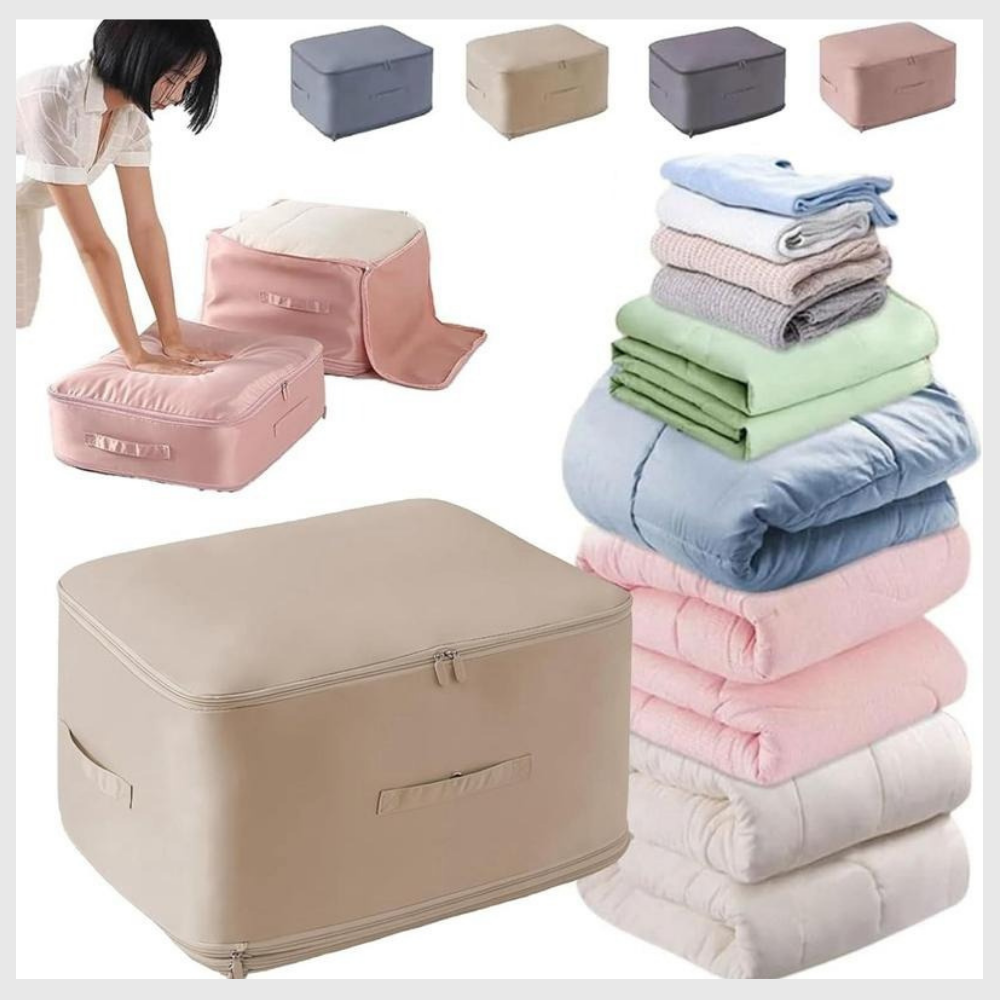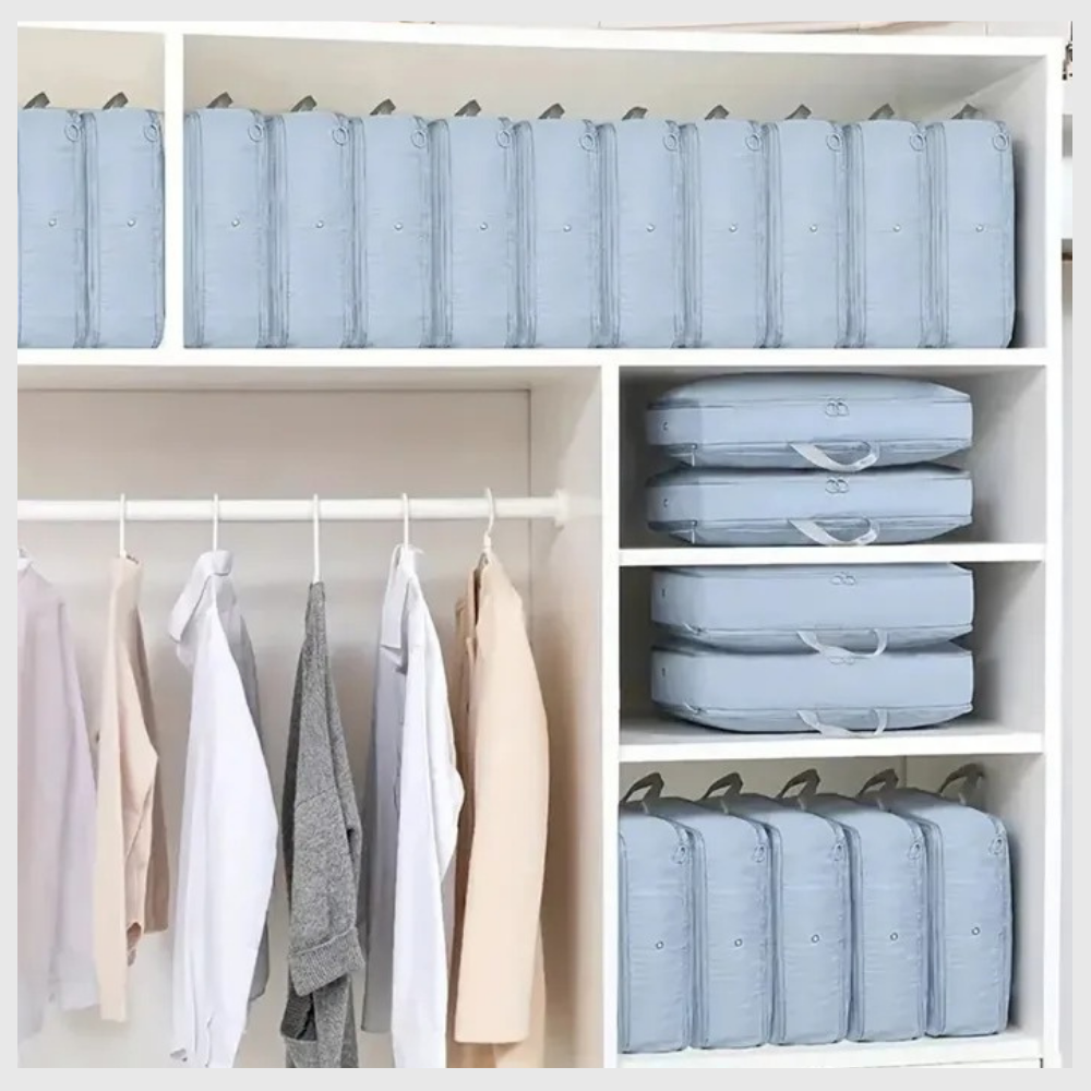 Libera espacio en segundos. Con EspaceFacile™, tus armarios finalmente respiran. Solo tienes que doblar, cerrar y comprimir, sin aspiradora. Disfruta de un almacenamiento sencillo que hace tu día a día más ligero y tu hogar mejor organizado.