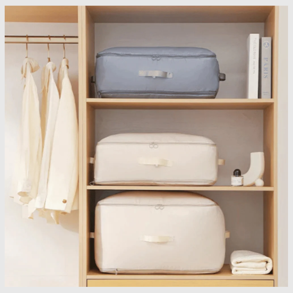 Tu ropa y mantas permanecen protegidas como el primer día. El tejido resistente e impermeable mantiene todo a salvo del polvo y la humedad. Guarda con total confianza, sabiendo que tus pertenencias siempre estarán listas cuando las necesites.
